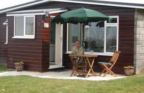 Little Nod is a well equipped holiday bungalow with a shared garden for residents only and a patio with garden furniture. It is situated on a small, secluded site of 12 bungalows behind a thatched pub in the coastal village of Welcombe and ideal for families or couples.