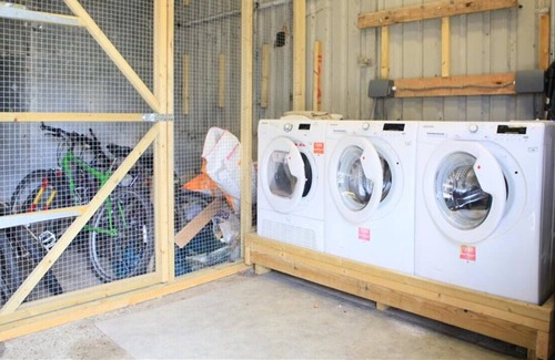 Utilities: Electric hob and oven, dishwasher, microwave, fridge/freezer. (2 washing machines, tumble dryer in laundry room)