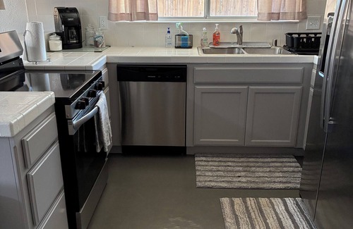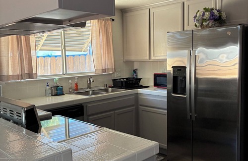 This Turlock home boasts 3 inviting bedrooms with 2 have comfy queen beds and the third bedroom has 2 twin beds. Guests will be happy to have Central heat and air. Free internet with Roku available on both TV’s. A TV in living room and master bedroom. Brand new appliances and fully equipped to make those special meals. The 2 bathrooms are equipped with shower and shower/tub combo. Washer and dryer with soap & softener to keep your clothes squeaky clean. Iron and ironing board for that wrinkled garment. Two blocks from Stanislaus University. Emanuel Medical Center a few minutes away. Approximately 5 minutes from Costco and in the heart of Turlock shopping in the new and old areas of Turlock. Relax in the back yard with Bistro set with umbrella and patio chair set for those evenings to relax. We look forward to your visit.