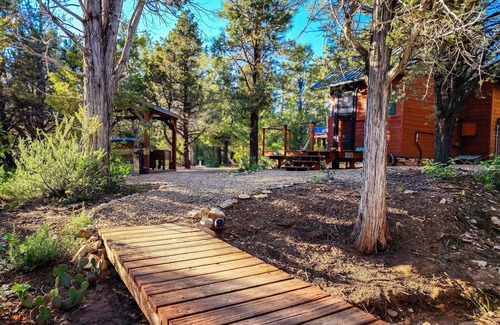 Located within walking distance to East Zion Trails and adjacent to the Ponderosa Ranch Resort, you'll have access to resort amenities for additional fees, while still enjoying the privacy and seclusion of your own retreat. With the East entrance of Zion just 20 minutes away, Bryce Canyon only 90 minutes away, and the Grand Canyon North Rim a mere 2.5 hours away, this cabin is perfectly situated for exploring the natural wonders of the area.