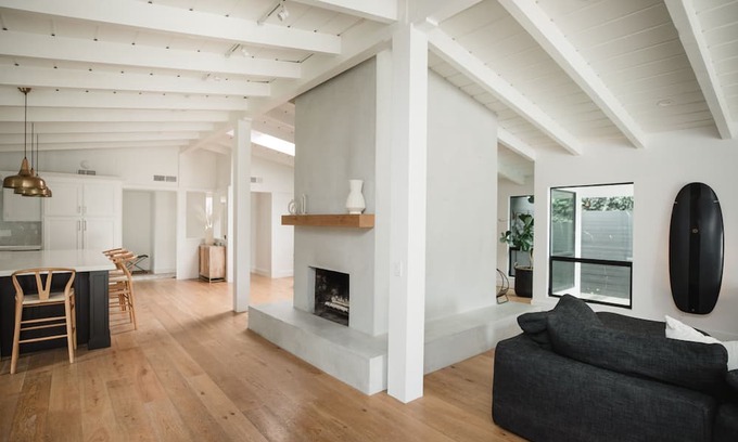 Indulge in San Diego bliss at our modern beach city villa, designed with quintessential California interiors. The open living space beckons groups and families, creating a seamless blend of style and comfort. Walk to the charming village, pristine beaches, and top-tier schools. The expansive backyard is an oasis featuring a pickleball court, pool with a hot tub, inground trampoline, fire pit, and Traeger grill. Book now for an exquisite stay where modern design meets coastal charm!