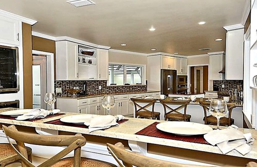 Oceanfront Open kitchen, dining and living room, LCD TV, surround sound system, laundry room, wine cooler.