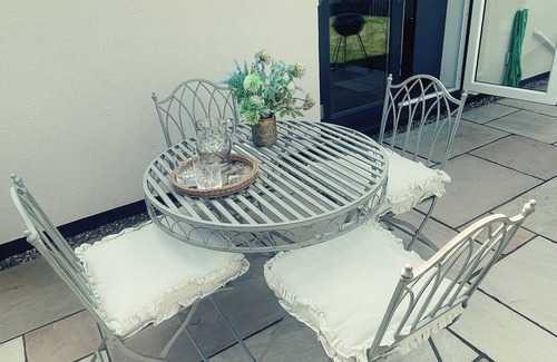 Outside, you can enjoy a sunny patio area with eating and lounging areas and a small barbecue.