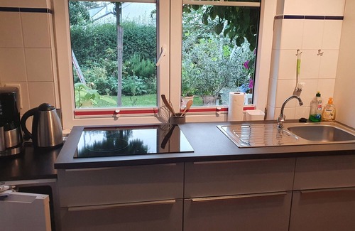 Cozy apartment for 3 adults or 2 adults and 2 smaller children in Bonn-Ippendorf with its own kitchen and bathroom. There are 3 (4) beds (a double bed of 1.80m x 2.00m, a sofa bed of 1.40mx2.00m) in a bedroom and a living room.