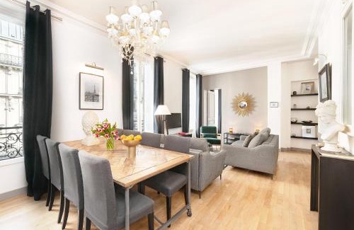 LivinParis - Luxury 3 Bedrooms Le Louvre I offers accommodations in Paris, a 15-minute walk from Musée de l'Orangerie and 1.2 miles from Pompidou Center. This apartment provides an elevator and free Wifi. The property is a 3-minute walk from Opéra Garnier and within 0.8 miles of the city center. This apartment includes 3 bedrooms, a living room and a flat-screen TV, an equipped kitchen with a dining area, and 2 bathrooms with a walk-in shower and a washing machine. Towels and bed linen are provided in the apartment. The accommodation is non-smoking. Popular points of interest near the apartment include Louvre Museum, Gare Saint-Lazare, and Pigalle Metro Station. Paris - Orly Airport is 11 miles away.
