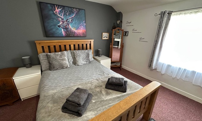Llanidloes - Sleeps 7 - Parking - Pet Friendly is located in Llanidloes. Llanidloes - Sleeps 7 - Parking - Pet Friendly provides accommodation, featuring Pet Friendly, Security/Safety, Bedding/Linens, among other amenities. This House features Pet Friendly, Security/Safety, Bedding/Linens, to make your stay a comfortable one.