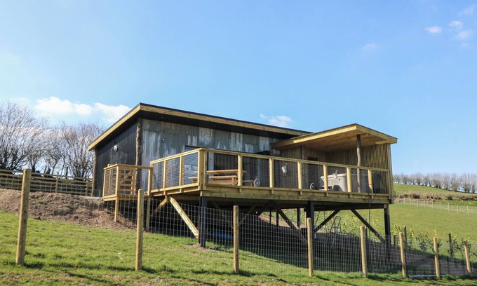 Llety Cariad, a single-storey, studio-style lodge, consists of a kitchen with electric oven, hob, microwave, and fridge, a dining area with seating for two guests and a sitting room with TV. The bedroom is king-size serviced by a shower room. WiFi, fuel, power, bed linen, and towels are included in the rent. Outside, there is an enclosed garden with lawn, enclosed decking with furniture and hot tub and access to a sauna and off-road parking for two cars. EV Car charger (download app and pay individually). Two well-behaved pets are welcome. Within 4.3 miles you will find a shop, and within 6 miles a pub. Sorry, no smoking. Bask in the countryside views in Powys at Llety Cariad. Note: No children are allowed at this property.