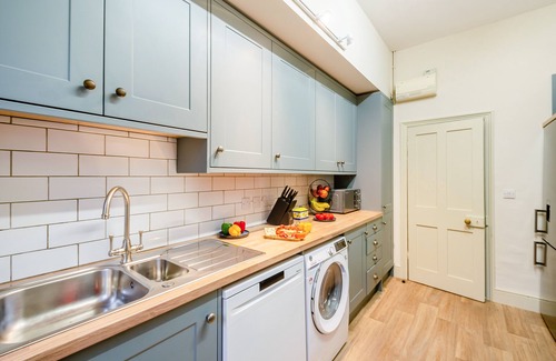 Electric oven and hob, microwave, fridge/freezer, wine/drinks chiller fridge, dishwasher and washer/dryer