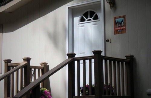 2 bedroom and 2 bathroom home with additional sleeping quarters in bunk house; for an additional $75.00 per night. The house sleeps 6 people total, 2 queen size beds and a full size sofa sleeper. There is an option of renting the cabin bunkhouse which sleeps an additional 6 people. Sleeping quarters only, no bathroom. $75 extra a night, 1,134 square foot home on wooded creek front property. Circle drive with out door fire pit and a lovely trail leading down to a private Creekside sitting area. Plenty of parking. 3/4 mile to The Tamrak Shopping Village and the golf course. Approximately 4 miles to Priest Lake.