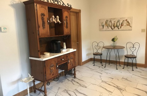 This beautifully remodeled very large 2 story private home is located on a 12 acres orchard. Enjoy the stunning views from any window in the home or take a stroll throughout the secluded property. Self check-in; WiFi provided. Kitchen with range, microwave, dishwasher, built-in toaster, Kurig coffee maker and large dining room with seating for 8. Utility room with washer/dryer. Main level master bedroom with 2 full baths and smaller bedroom with single bed. Large living room with Smart TV. Upstairs includes 2 large bedrooms and 2 full bathrooms. Outdoor grill; complementary coffee and water; blow dryers; shampoo/conditioner; outdoor decks; located near major highways and the Capital; pets are strictly prohibited. Check in 2pm. Check out 12pm.