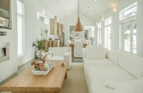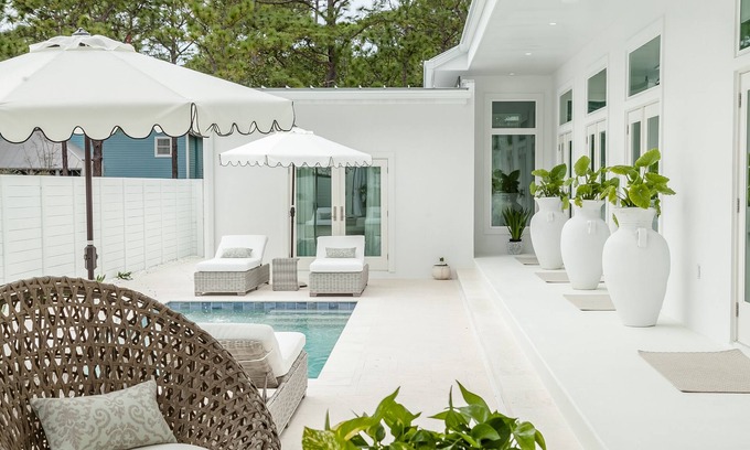 Casa Francisca is a 3-bedroom, 3-bath, with a 4-bed bunkroom, 2-story modern house conveniently located in the heart of Old Seagrove Beach and the middle of 30A. Just over 2 miles long, this free-spirited community is a balanced mix of old and new Florida and its laid-back style makes Seagrove Beach truly one of a kind. Casa Francisca is just a no-hassle short walk to the beach, approximately 1/3 of a mile, and enjoys 5 different dedicated neighborhood beach access points (more than any other beach along 30A) to more than one mile of open, deeded beach for your enjoyment. Close to nature trails, entertainment hubs, groceries, restaurants, boutique shops, and dune lakes, yet secluded, private, tranquil, and serene where you'll enjoy peace and relaxation. The open layout centered around the courtyard and pool is perfectly suited for families looking to reconnect and enjoy the afternoon breeze. Tastefully appointed rooms, with king-size beds in all of them, 2 on the main floor open to the pool, the third one on the second floor open to the outdoor terrace where you can enjoy the sunset. There is a large, fully stocked kitchen with every gadget you can think of and an outdoor grill. Beach towels, 4 beach chairs, and 4 bikes will be provided.