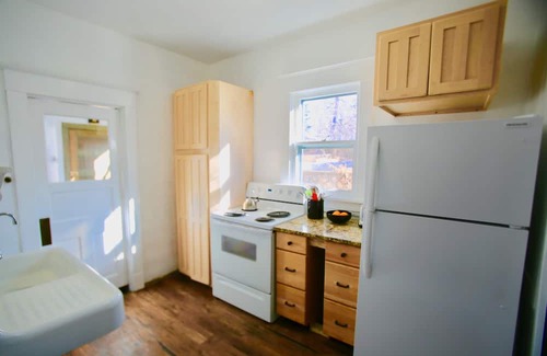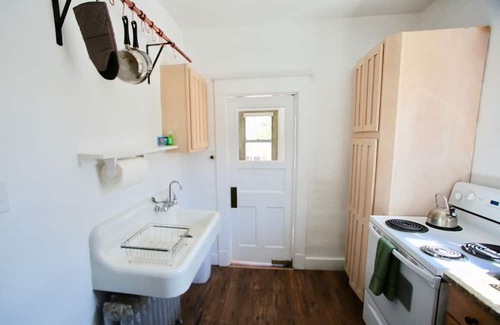 Location location location! Two bedroom one bath cottage for long term monthly rent, CU school year lease. Live in the heart of University Hill blocks from Chautauqua Park. Walking distance to CU Boulder, restaurants, biking trails, the bus line and downtown Boulder. Lots of historic charm in this 100 year old one of a kind home. Move into this completely furnished and fully stocked home. Quiet neighborhood, gleaming wood floors, and lots of windows. This home has the era of the days gone by. Bathroom has been updated with new tiled floors and a new claw foot tub. Huge front yard as this cottage was built towards the back of the property. Beautiful large street lined with mature trees as this street use to be where the trolley use to run. Utilities/wifi included up to $200 per month. There is nothing new or shiny in this cottage. We are looking for tenants who appreciate the charms of an old home. In the summer, we do have window air conditioners if needed. Great back sunroom/dining area with lots of windows.