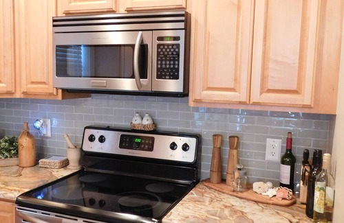There is no better place to stay at the beach than this two bedroom, two bathroom condo smack in the middle of the city with the beach steps away. As soon as you enter the door, you'll feel all of your worries float away. The open kitchen/living-room area will make it easy for you to cook delicious meals while not missing any time with the family. Enjoy cooking with brand new pots and pans. Counter height kitchen table comfortably seats six.