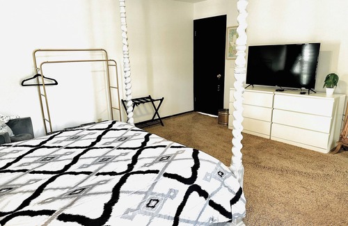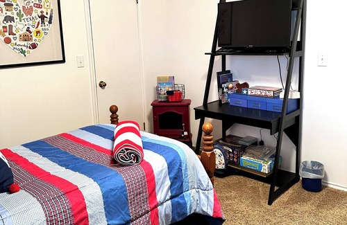 Welcome to Black Gold in Midland,TX. This home is centrally located in Midland. It is less than mile from several dining establishments, only blocks away from Midland College, and only two miles from Midland Memorial Hospital. With the home being right off of loop 250 you can get anywhere in town with ease. We can comfortably sleep six adults with a queen bed, two twin beds, and the sofa converts to a full size bed there should be no problem finding a place to get some rest. If you want to relax there is a reading nook and a private courtyard off the primary bedroom. The primary bedroom also features an ensuite bath. There is also a covered porch in the back yard. Basic cable and broadband wifi are available if you want to stay connected or need to get some work done. If you like to cook there is a stove, oven, and an air fryer available for your use. If you need a cup of coffee to start your day off that is provided. All fresh liens and a stater hygiene kit included.