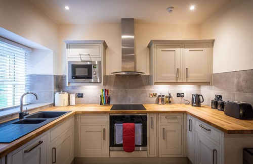 The kitchen, dining area and living room are open plan, allowing a feeling of space where you can enjoy your complimentary bottle of wine. You are on holiday after all!
