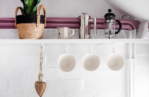 The character and original features of Locke's have been allowed to shine through with old timbers, polished flagstone floors and an open fireplace. However, the clever use of colour and textures ensures this is a beautifully contemporary place to stay. A sumptuous olive-green sofa is the perfect place to relax after a day of exploring and there's a smart TV for cosy evenings in. The small but perfectly formed kitchen has everything practical needed for a self-catering stay. A stylish bathroom and a pretty bedroom with a four-poster bed are on the first floor.