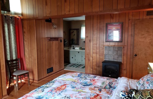 There is a gas log fireplace upstairs, wood stove downstairs (wood provided) and outside propane heater for the winter snowbird renters.