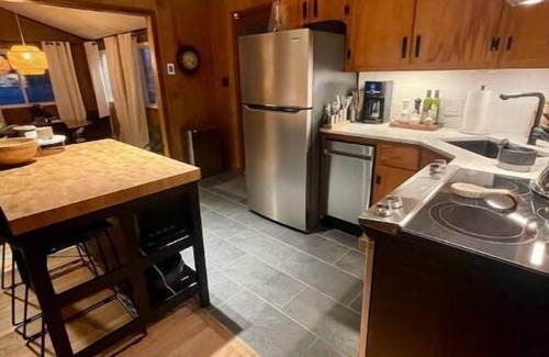 A pocket of 826 sq ft of tranquility, this 1969 cabin has been eloquently brought back to life for you to enjoy. The home is nestled in a wooded and peaceful neighborhood, surrounded by nature. One can hear the footsteps of the deer or the chirping of birds while sipping their morning coffee in the beautiful outdoor spaces.