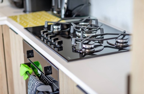The open-plan kitchen is fully equipped with everything you need to dine in, including a refrigerator, microwave, oven, freezer, coffee machine, toaster, and a full set of kitchenware, plates, and bowls. Whether you're enjoying a hearty Scottish breakfast or a quiet evening meal, you'll feel right at home.