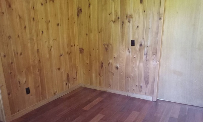 Peaceful area. Hidden home. Tons of open space. Fully furnished kitchen with ceramic tile floor. 8 or 9 months lease. Tons of parking available. No bed included. Washer and dryer included. Wooden exterior and interior. Electrical and propane gas not included. 5 miles from commons.