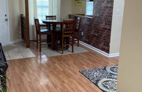 Spacious two-bedroom, two-bath home. There is one full bathroom attached to each bedroom. Large living room with vaulted ceiling. Full kitchen with all appliances and dishwasher. Fenced in backyard with deck. Top floor bedroom has stairs that take you to the loft, where there is a futon mattress for lounging. Washer and dryer on premises. Close to Busch Gardens Williamsburg, Water Country USA, Christopher Newport University, and Yorktown Battlefield. Close to restaurants, grocery stores, and interstate.