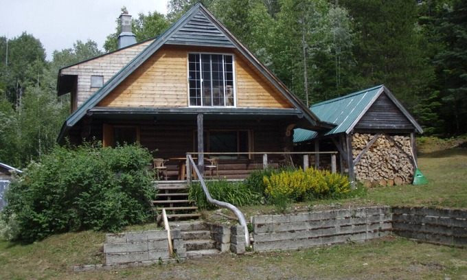 Clean, bright log house with hardwood floors, electric heat, wood heat, nearby trails, 15 minute vehicle access to stores and restaurants, quiet retreat next to Seven Sisters Park. Two bed, two bath full kitchen, loft, cathedral ceiling living room.