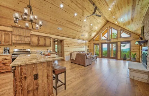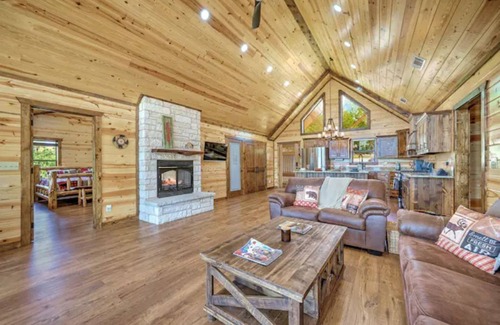 Come enjoy our log cabin north of Sardis Lake in the beautiful Ouachita Mountains of SE Oklahoma. This view of the mountains can’t be beat! The Time Out is a newly built 3 bedroom/2 bathroom cabin situated on 3 acres and surrounded by trees. Sip on a glass of wine and watch the gorgeous sunset over the mountains right from the back porch. Roast marshmallows over the large stone fire pit. Lay in a hammock and soak in the mountain air. This area is perfect for stargazing as it is away from any city lights. Enjoy the seclusion of country life with all of the modern amenities of home including a large fully stocked kitchen, WI-FI, smart TVs, and a beautiful double-sided gas fireplace.