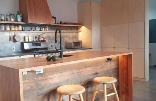 Bright and clean this small house feels larger than it is with high ceilings and lots of windows letting in light or a cool breeze. A blend of reclaimed materials and sleek modern styling harness a sophisticated atmosphere.