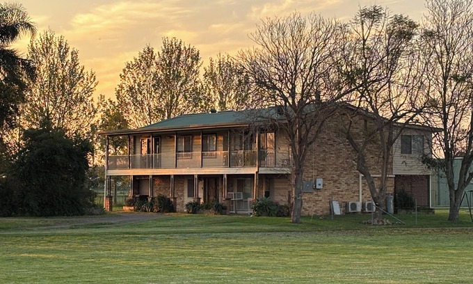 Escape to our country style home on 43 acres of farmland, perfect for family or friends. With 4 spacious bedrooms (2 queen beds + 1 double bed, + 2 king single beds), a relaxing bath/shower, and a washer machine for longer stays, it’s designed for comfort. Cook in the fully equipped kitchen, then unwind in the cozy lounge or outdoors with spectacular views whilst relaxing having a glass of beer or wine and cooking a BBQ. Explore the farm, feed our friendly cows and chickens. Moments away from historic Morpeth and Maitland.