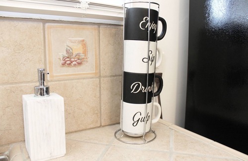 The kitchen is fully equipped with appliances and cooking essentials. Perfect for making meals.