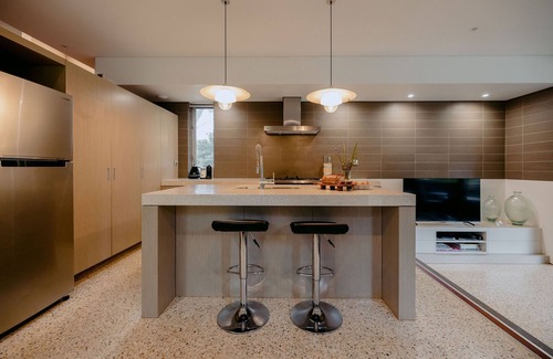 While you're here, you can enjoy all the comforts of home and more, including a rainfall showerhead and a full-sized refrigerator/freezer, as well as an oven and a stovetop. Other amenities include premium bedding, down comforters, laundry facilities, and a freezer.