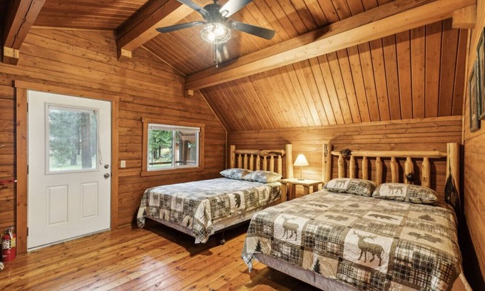 Welcome to Lost Horse Lodge! We have a variety of cabins available sprawling over 13 acres of real Montana countryside. We can accommodate groups of all sizes in 3 different room types. Bigger group? Check out our aerial map on our website to select the perfect location or pet friendly cabin. Call us direct to inquire about events, retreats & specials! We are close to fishing, hiking, climbing, biking, horseback riding & more! This is a double queen pet friendly cabin, Cabin #16.