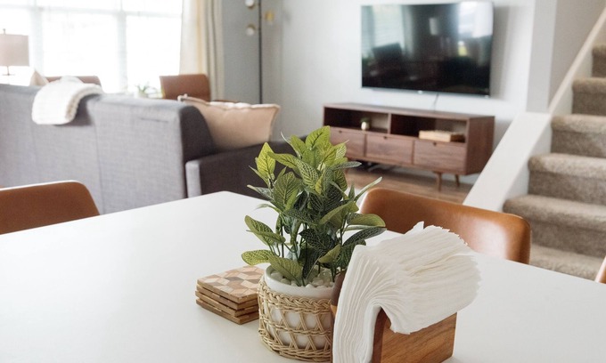 Conveniently located 3-bedroom gem in Raleigh. This lovely townhome offers a comfortable and inviting space for guests. With a king bed, queen bed, and full bed, everyone will find their perfect spot to unwind.