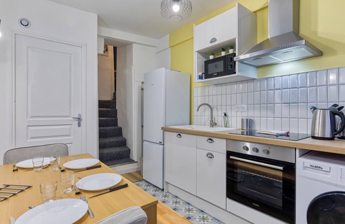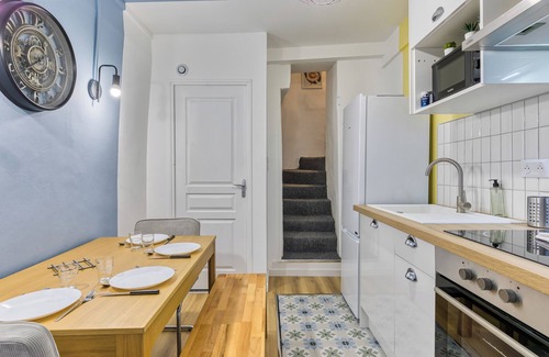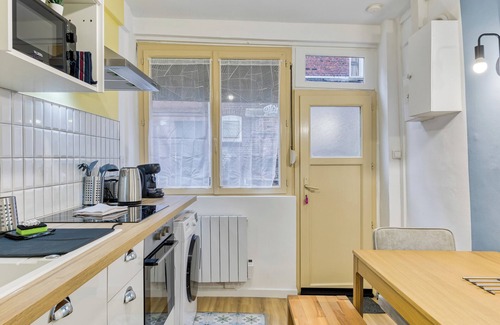 Located at the beginning of rue des Capucins, behind the gardens of the town hall in Rouen, this atypical 4-storey town house will win you over with its location, renovation and interior design. The entrance to the house opens onto a functional kitchen. Its optimised layout makes cooking a breeze, and the dining table is perfect for 4 guests. You'll find everything you need for your home: crockery, microwave oven, kettle, Tassimo coffee maker, toaster, washing machine and tumble dryer.
