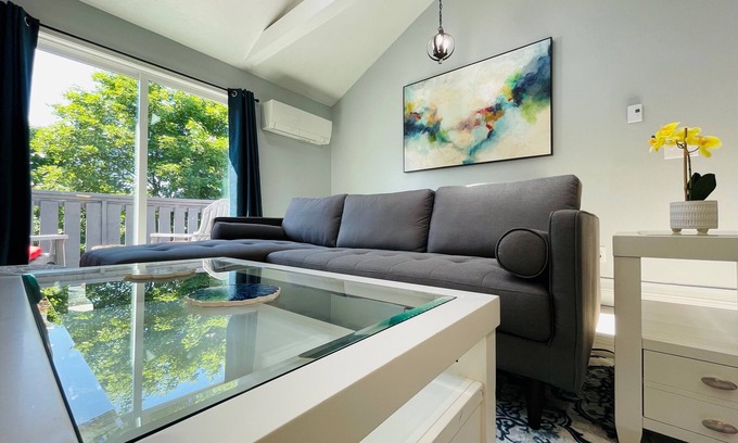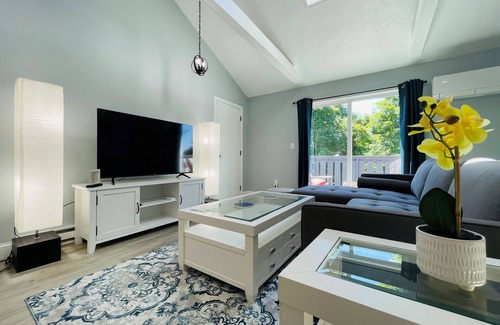This new construction has an open layout with a welcoming living room and skylight, 2 bedrooms, and an eat-in kitchen complete with black stainless steel appliances, quartz countertops, recessed lighting, and under-lit cabinets. The bathroom has a tiled floor, glass shower, new faucets, fixtures, and a pedestal sink. The unit is equipped with high-speed internet, a smart TV, central heating, an entrance deck, and private parking. Perfect for UMass Medical, Bio-tech, and local stays!