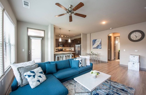 When you return, a 1126 sq. ft interior awaits, complete with HDTVs in each room, lightning fast 500 Mbps Wi-Fi, and access to gym & swimming pool!