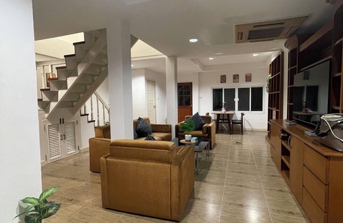 Escape to this lovely house in Minburi. With 3 cozy bedrooms including 2 queen beds and 2 twin beds, guests will feel right at home. The 2.5 bathrooms are equipped with showers and hair dryers for convenience. You're sure to make fantastic memories with a stay at our place.