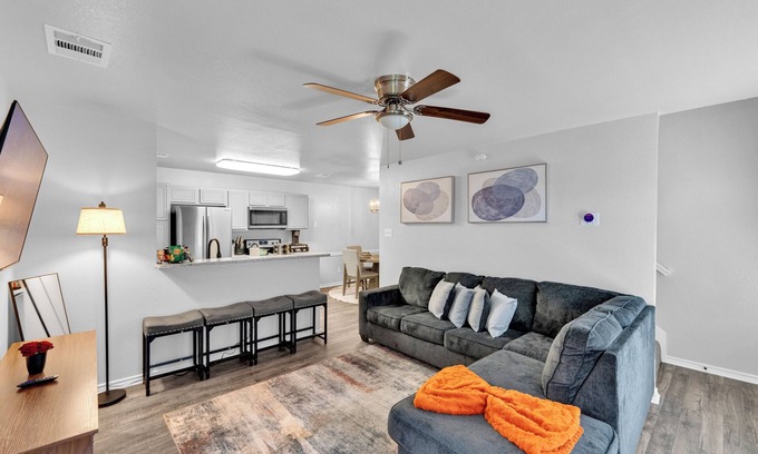 Escape to this cool townhome in picturesque Glenn Heights. With 3 bedrooms including 1 king bed and 2 queen beds, this marvelous property offers a cozy retreat for guests. Enjoyable amenities like heating, AC, and a hair dryer ensure a comfortable stay. Relax in the living room with a sofa bed for additional space. We look forward to welcoming you to our place.