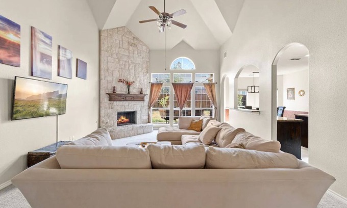 Located in the center of DFW, easily explore the gorgeous Dallas skyline OR the Stock yards of Fort Worth. Within minutes of our location, you can enjoy the Dallas Cowboy's AT&T stadium, Ranger's new Globe Life Field, Texas LIVE!, Six flags/Hurricane Harbor, or Epic Indoor Water park. Want to stay out of the Texas sun? Enjoy our cozy home, fully equipped with a game room, pool table, office space, Smart TVs, high speed internet, free coffee/beverages, indoor/outdoor lounging, cooking, and more.