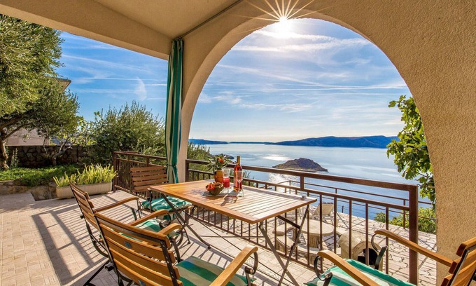 In the idyllic little village of Sveti Juraj, under the beautiful mountain Velebit and not far from Senj, you will find this comfortable vacation apartment on the high ground floor on two levels. Relax on the spacious terraces and enjoy the unforgettable view of the sea and the countryside. Also visit Senj with rich cultural heritage and various events during the summer months. Take trips to the national parks in the area and admire the untouched nature. In the house is also CKV287.
