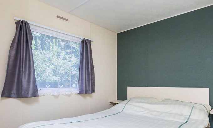 "Hoge Veluwe", 4-room mobile home 27 m2. Practical furnishings: living/dining room with dining table and TV. Exit to the terrace. 1 double bedroom with 1 double bed. 1 double bedroom with 2 beds. 1 double bedroom with 1 x 2 bunk beds. Open kitchen (4 gas rings, microwave, electric coffee machine). Shower/WC. Heating. Terrace. Terrace furniture. Reserved parking at the house. Please note: non-smoking house. Maximum 2 pets/ dogs allowed. Smoke alarm. When you bring a pet an additional cleaning fee of € 10 applies on top of the pet's costs, to be paid on spot.