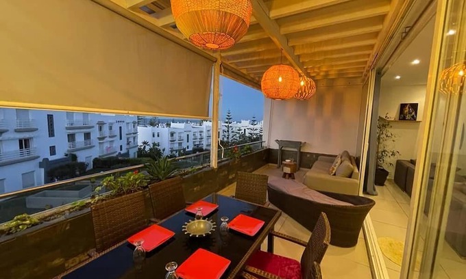 Nestled in Dar Bouazza, this 2-bedroom, 1.5-bathroom vacation home brings it all within your reach. Fans of nature and the outdoors will love being 24 minutes by car from Ain Diab Beach and 34 minutes from La Corniche Beach. If you'd like to explore the area, you can make the 18-minute drive to Morocco Mall or the 24-minute drive to Anfaplace Mall.