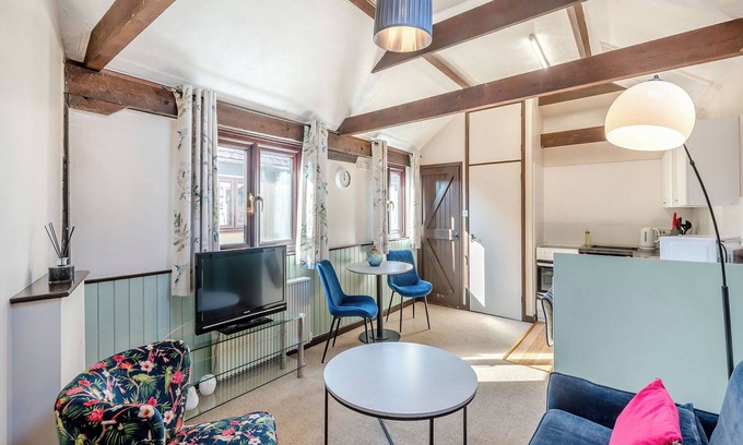 Games Room.. Electric central heating, electricity, bed linen, towels and Wi-Fi included. Travel cot and highchair. Welcome pack. Grounds with courtyard, sitting-out area, garden furniture and barbecue (shared with other properties on-site). Games room (shared with other properties on site) Outdoor swimming pool (open May-September shared with other properties on-site, 9m x 4m, depth 0.9m x 1.8m, ). Private parking for 1 car. No smoking.. Nestled in the picturesque village of Elmstead Market, this charming one-bedroom barn is the perfect getaway for couples or friends seeking a peaceful retreat with all the comforts of home. Robin features a spacious ground-floor bedroom, thoughtfully furnished to ensure a comfortable and relaxing stay. The bedroom boasts a super king-size bed that can be converted to two singles upon request. Guests can unwind in style with a comfortable sofa, flat-screen TV, and free Wi-Fi after a day of exploring. The dining area comfortably seats two, ideal for enjoying meals together, and the well-equipped kitchen allows for easy meal preparation.