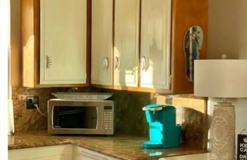This rental comes with the main kitchen of the home. The kitchen is still the original (beach bungalow) It has everything but a dishwasher.