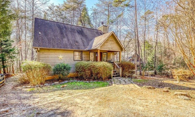 Start your next Georgia adventure with this classic little creekside cabin tucked away in the trees of Epworth, GA. This beautiful, dog-friendly home features a rustic wood-paneled interior, hardwood floors, a wood-burning fireplace, and even a foosball table. When you're not pulling the trout out of Fightingtown Creek, stretch out in the spacious living area to catch up on your favorite shows with the Dish Network TV. Spend some time with a good book in the hot tub then throw a little char on today's catch with the gas grill and serve it up over the handsome dining table.