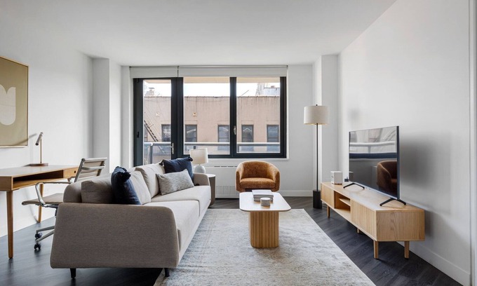 As with any Blueground apartment, you’ll find a thoughtfully designed space complete with beautiful furniture and a fully equipped kitchen in this one bedroom property. And, thanks to our superior quality mattresses, luxury linens, and towels, you can relax knowing you’ll always feel comfortably at home. When you’re ready for some fun, you can take in the New York vibes or bring the entertainment to you with the premium wireless speaker or smart TV. This apartment also offers in-apartment laundry.