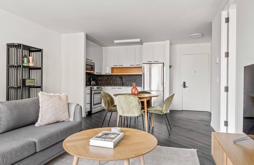 Thoughtfully designed with bespoke finishes, modern furnishings, and a fully equipped kitchen, you’ll enjoy that “I’m home” feeling with this Blueground apartment. Whether you’re lounging in your lovely living room streaming the latest and greatest entertainment on the smart TV or premium wireless speaker, or getting some well-earned rest on the superior quality mattress with luxury linens, you’ll fall in love with everything this Alphabet City apartment has to offer. This apartment also offers in-apartment laundry.