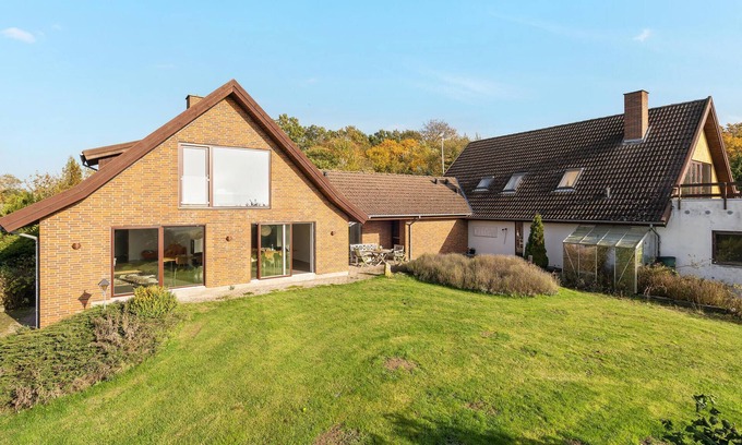 Outside Faaborg, close to the forest, this wonderful, high villa welcomes you. It consists of two connected houses, making it ideal for larger families. Take advantage of the stylish, minimalist interior, fully equipped for a comfortable stay. The peaceful atmosphere invites you to spend relaxing vacations with your loved ones.