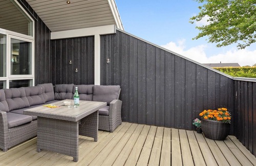 This beautiful vacation home is located in a vacation home area on Flovt Strand, which invites you to enjoy a great vacation with its beautiful nature and lovely sandy beach. Large windows let in plenty of natural light, so you can really make yourself at home in the bright rooms. After a wonderful day at the beach, you can soak in the whirlpool or relax in the in-house sauna. After a good dinner together, a game of table tennis will get your circulation going again.