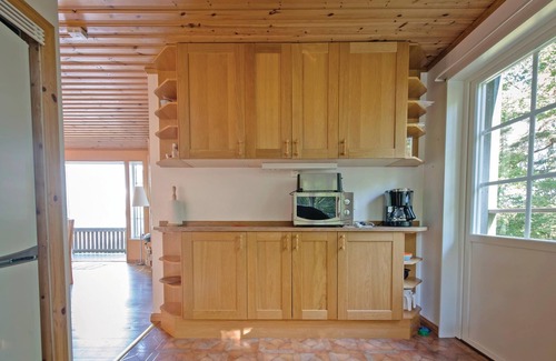This well-maintained cottage with plenty of space and a wonderful open fireplace is situated on a headland in Lake Mälaren. Lake view from all rooms. Close to nature reserve for hiking. Large partly covered wooden terraces on three sides of the house. Rowing boat on own sandy beach with jetty. Free fishing in the lake. Close to Strömsholm and museum. Eskilstuna Zoo 20 km. Stockholm 120 km.
